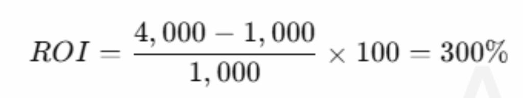 For example, if a business spent $1,000 on a digital marketing campaign and generated $4,000 in revenue, the ROI would be: